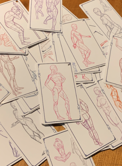 This deck was created by an artist who understands that sometimes, you just need a creative nudge to help get the pencil moving and break that pesky block. By simplifying the human form, we hope to remove the inevitable anxiety that comes with drawing a person, and speed-up your art, over time, increasing your own understanding of human anatomy, proportions and movement.